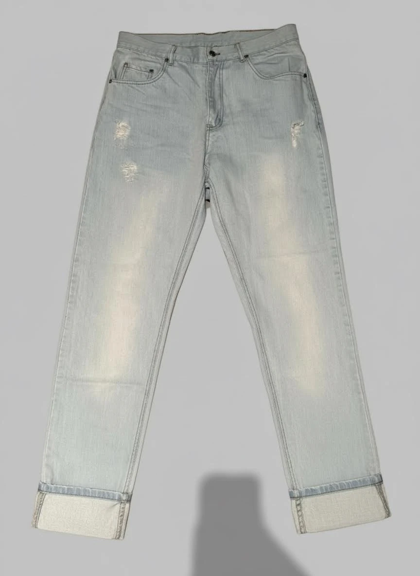 Home / Apparels / Light Blue Denim – Straight Fit, Ripped & Faded